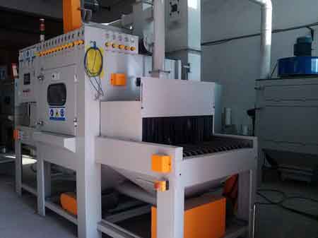 输送式自动喷砂机适用于平板类、盘类、四方体、型材及其他异性工件的喷砂加工,例如:平面不锈钢板材、普通钢板、玻璃钢板、石材、不粘锅、烤盘、多士炉、电脑机箱、功能DVD面板、笔记本、电脑主机板、装饰件、包牌徽章、通讯器材、铝板材、型材及其他异形件等。