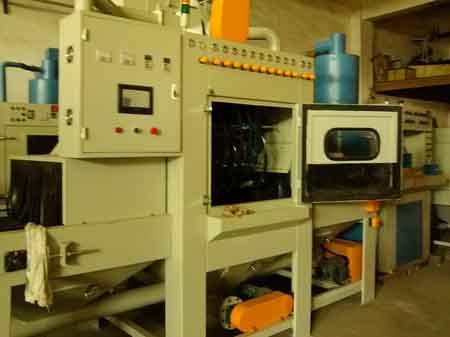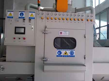 为深圳比亚迪定做的触控全自动输送式喷砂机,