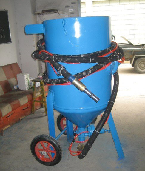 动行成高压作用,将高压罐内的砂料通过输砂管喷出,然后随压缩气流由喷枪嘴高速喷射到工件表面,达到喷砂加工的目的。